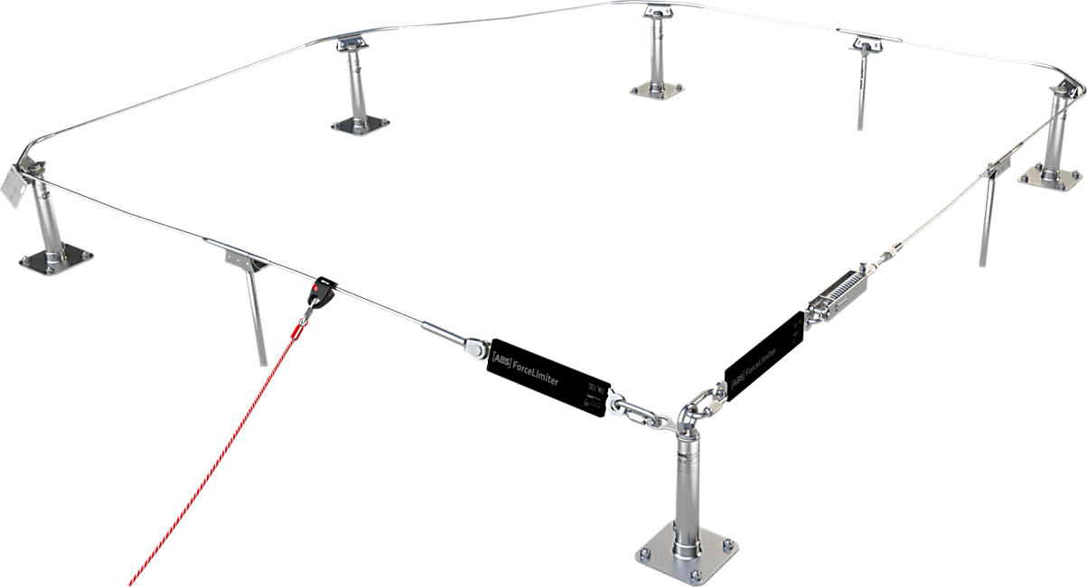 Alle kabelsystemen van ABS Safety zijn vervaardigd van V4A-rvs en leverbaar in 2 kabeldiktes. De ABS-Lock SYS II is gebaseerd op een sterke rvs kabel van 8 mm doorsnee, terwijl de lichtere ABS-Lock SYS IV een 6 mm kabel heeft. Met speciale bochtelementen worden de kabeltrajecten probleemloos om hoeken en hindernissen heen geleid. De lengte van het traject is hierbij nagenoeg onbeperkt. Kern van de volledige passeerbare aanlijnvoorzieningen is de gebruikersvriendelijke ABS TI-FlexCurve. Dit eenvoudige bochtelement van roestvrij staal wordt bij installatie gewoon met de hand in de vereiste hoek gebogen (max. 90°; Kabelloop tot max. 120°). En omdat deze component daarnaast ook vrij kan worden gedraaid en uitgelijnd, neemt hij niet alleen zonder problemen alle bochten, maar compenseert ook hoogteverschillen.